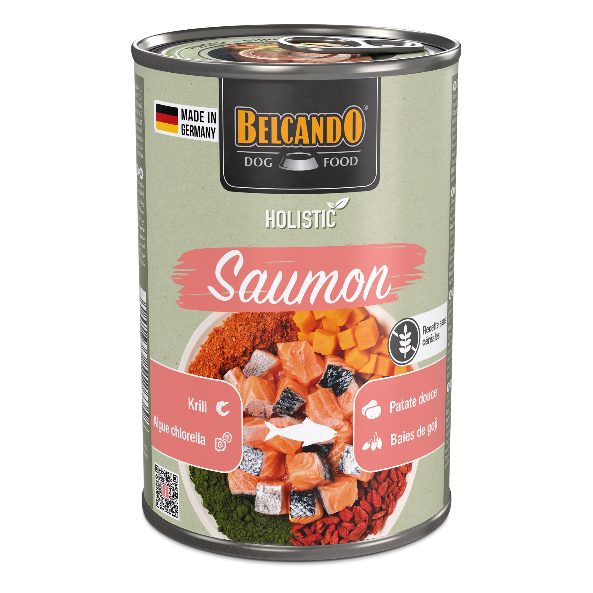 Ouvrez le couvercle et vous comprendrez tout de suite qu’il y a plus que cela ! Du saumon exquis avec un supplément de krill, recouvert d’une couche de super-aliments particulièrement délicieuse qui parle d’elle-même : des baies de goji juteuses, de la chlorella, une algue très nutritive, et des patates douces irrésistiblement savoureuses, visiblement fraîches et regorgeant de nutriments. Ces ingrédients sont de véritables concentrés d’énergie, riches en antioxydants, en glucides de haute qualité, en acides gras oméga-3, en vitamines et bien plus encore.