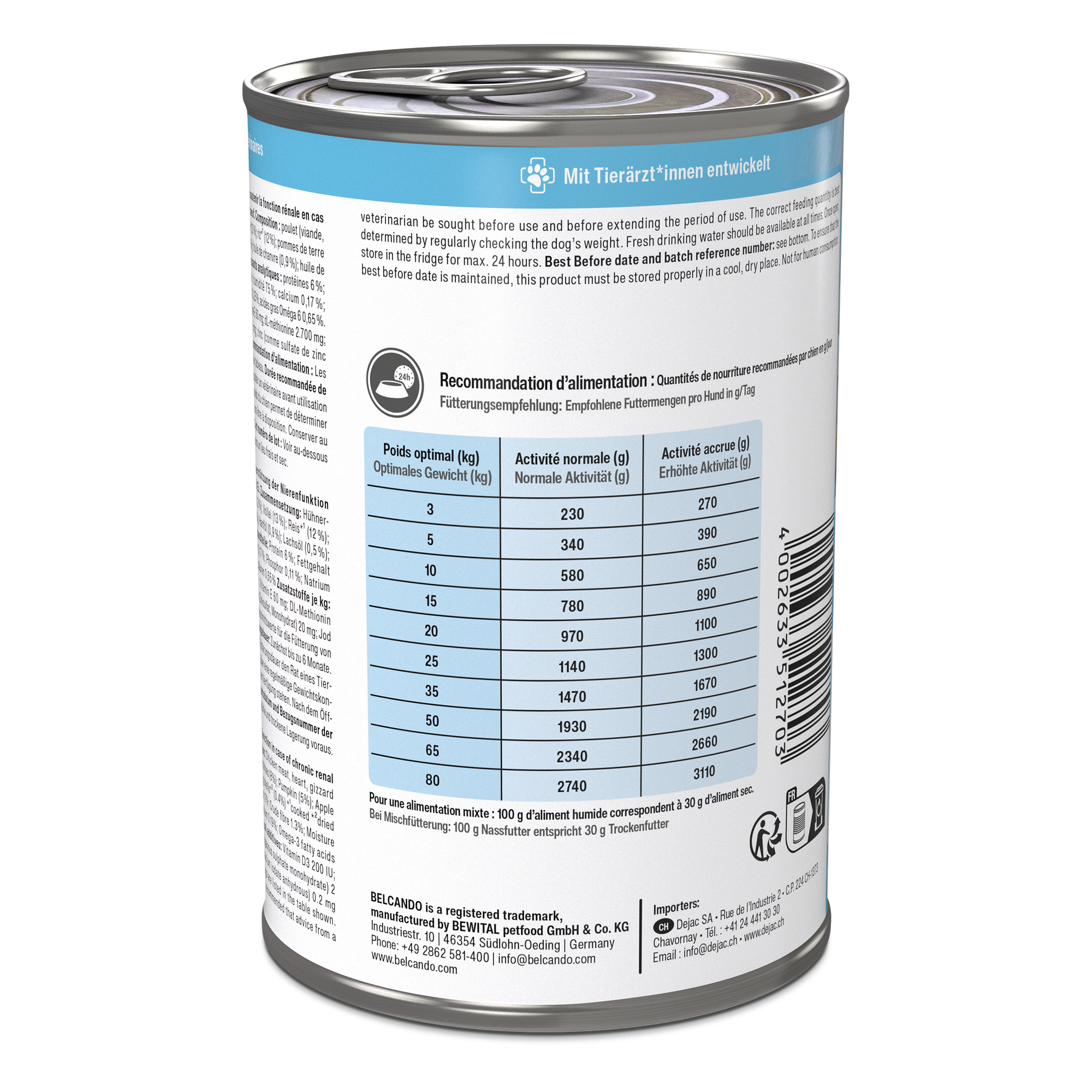 Qu’est-ce qui différencie BELCANDO Vetline d’autres aliments diététiques complets ? Son utilisation garantit des ingrédients optimaux axés sur la fraîcheur et l’équilibre pour une saveur unique ! Il s’agit notamment de précieux superaliments, tels que la courge, les fibres de pomme et la viande de poulet fraîche.